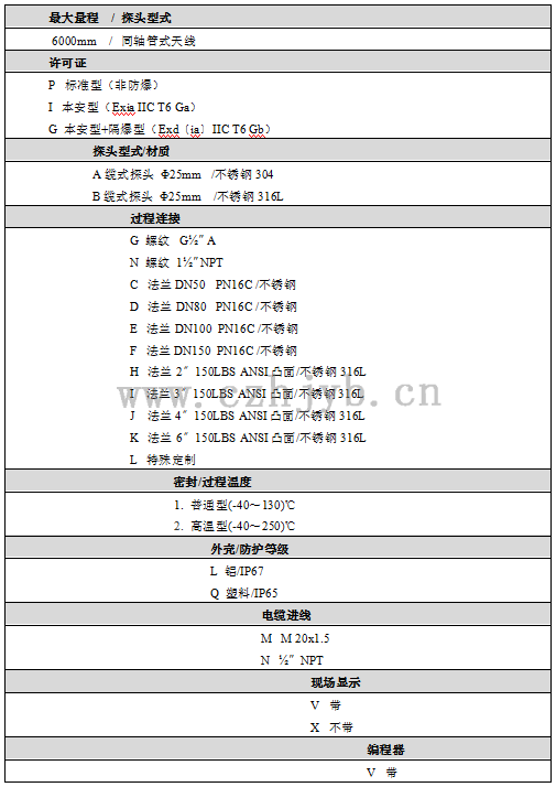 外殼                                            鋁,塑料,不銹鋼316L